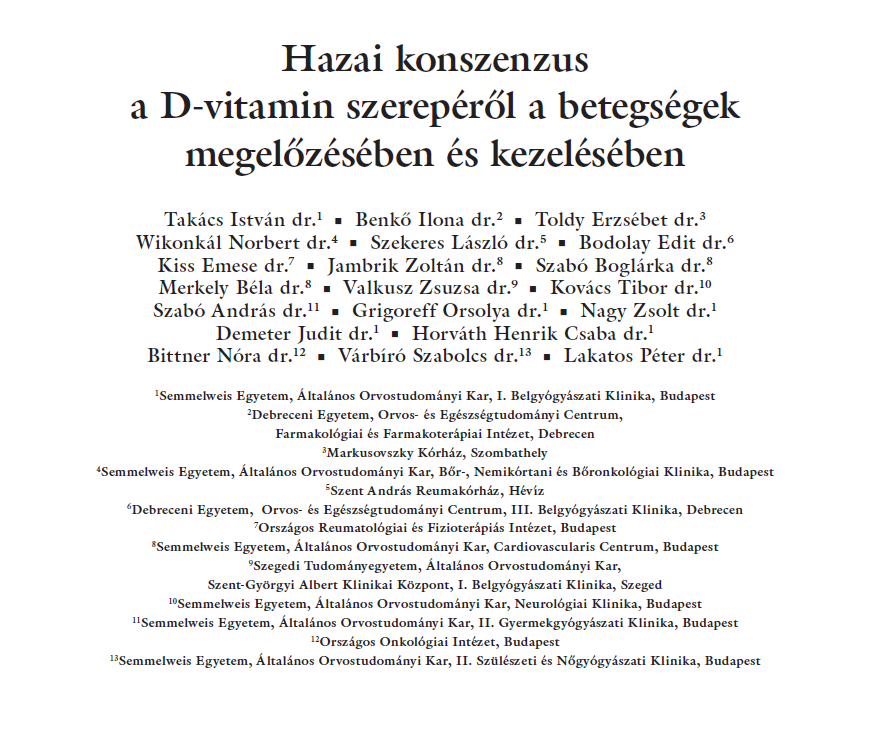 Hazai konszenzus a D-vitamin szerepéről a betegségek megelőzésében és kezelésében OH 2012.153. Suppl 5-26.